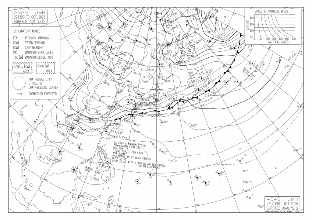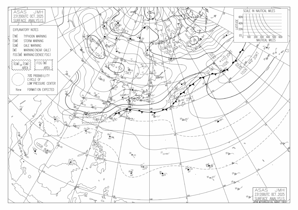 さて、そんな体調管理が大切な季節の変わり目ですが、今回考察するのは10月21日から23日の天気図です。